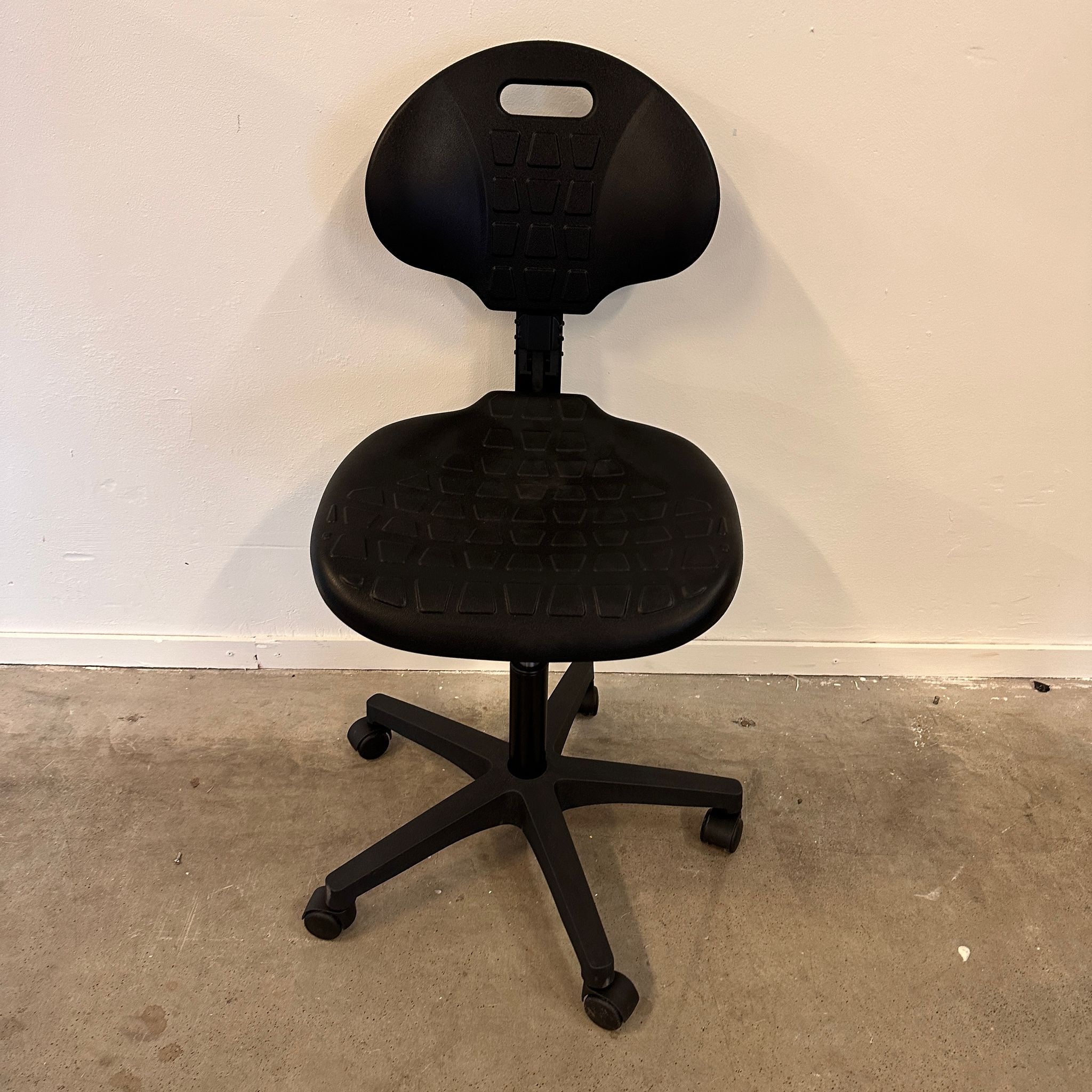 Ideaal voor gebruik in o.a. laboratorium en werkplaats Doe uw werk comfortabel op deze lage werkplaatsstoel. Verstel uw zitting en rugleuning eenvoudig in hoogte. Maak de stoel verrijdbaar na het monteren van de meegeleverde wielen. Wordt geleverd inclusief veiligheidszwenkwielen.