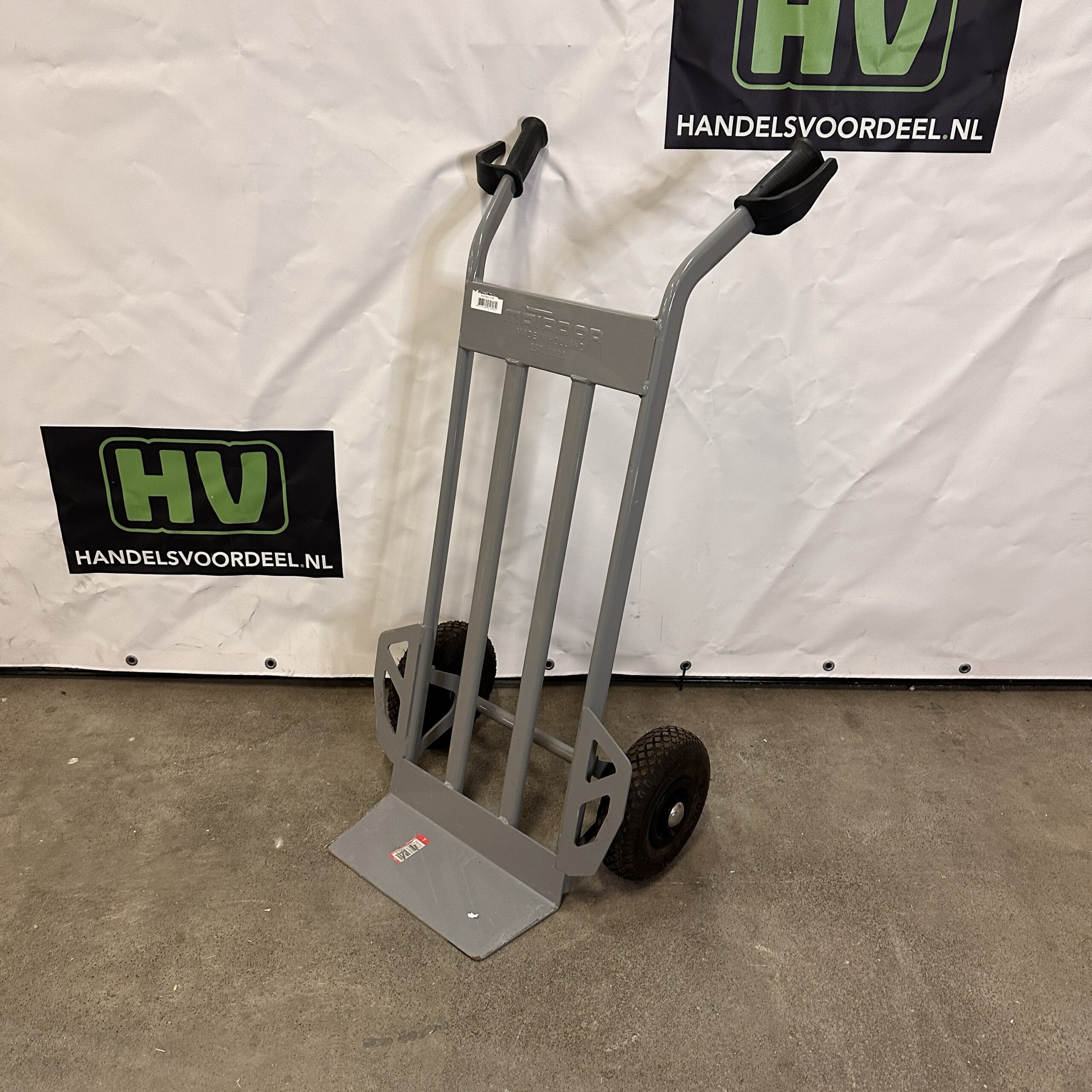 - Stevige steekwagen uitgerust met rubberen wielen.